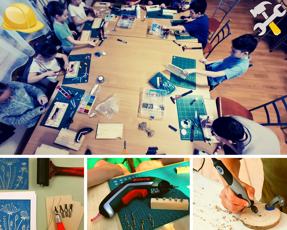 Warsztaty majsterkowicza to zajęcia na których uczestnicy sami tworzą własne przedmioty użytku codziennego korzystając z prawdziwych narzędzi. Podczas zajęć wspólnie wymyślamy projekty, które sami tworzymy we współpracy z innymi rówieśnikami. Ogranicza nas tylko nasza własna wyobraźnia. Każde zajęcia to eksperymentowanie z naszymi pomysłami. Zajęcia pomagają rozwinąć wyobraźnie przestrzenną, sprawność motoryczną, współpracę z innymi.