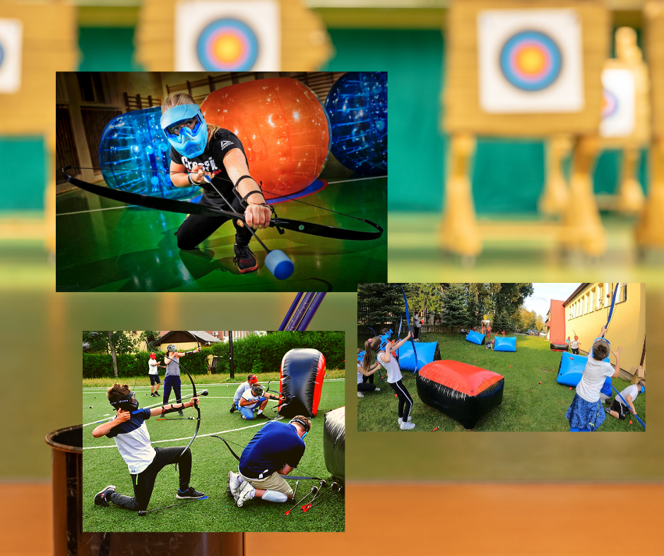 Zapewniamy łuki, strzały, maski, ochraniacze na ręce. Zajęcia można realizować na sali gimnastycznej lub świeżym powietrzu.