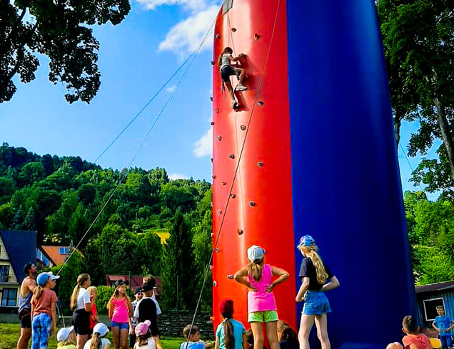 Zajęcia na dmuchanej ścianie wspinaczkowej. Idealnie sprawdzają na: