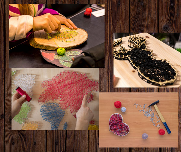 Wszystko czego potrzebujemy to deska, gwoździe i nici. Zajęcia w tej technice to tworzenie obrazów bez użycia farb. Daje to wyobraźni nieskończone możliwości. Każda praca jest niepowtarzalna i może powstać na kilka sposobów.