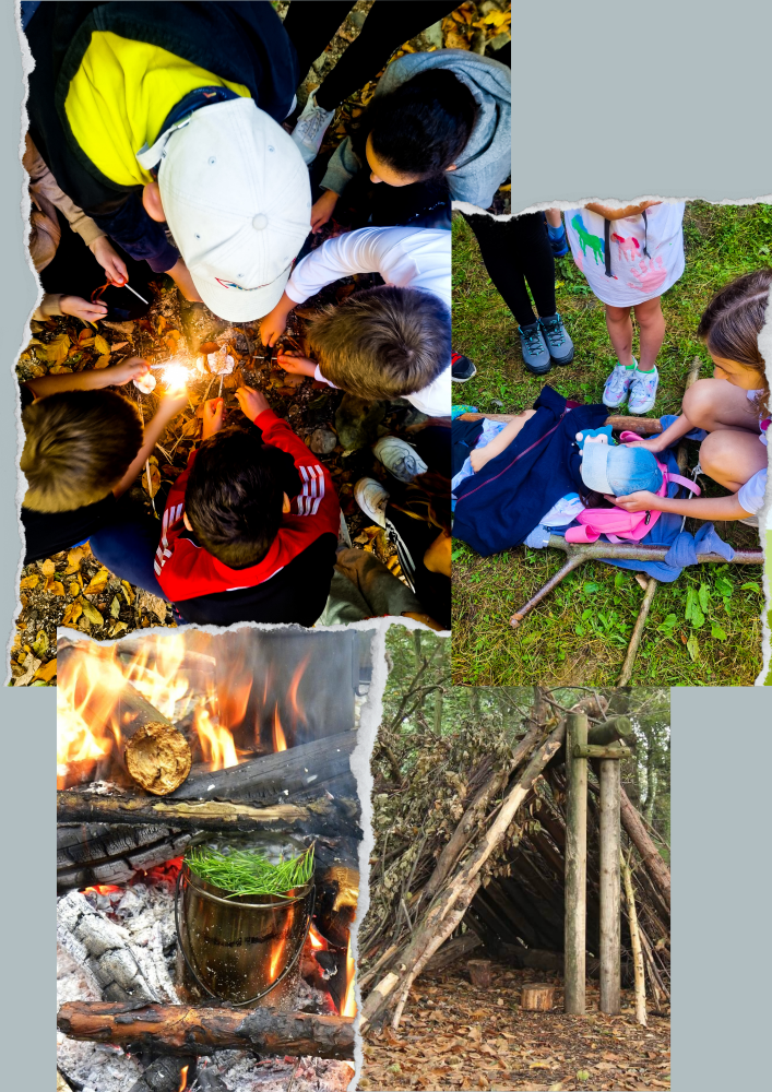 Zajęcia survivalowe (bushcraft), czyli nauka rozpalania ogniska za pomocą krzesiwa, przygotowywanie posiłków, wykorzystanie przedmiotów codziennego użytku. Uczestnicy poznają również jadalne rośliny, gatunki drzew występujących w lesie. Dodatkowo prowadzimy zajęcia dotyczące abc wypraw górskich oraz pierwszej pomocy